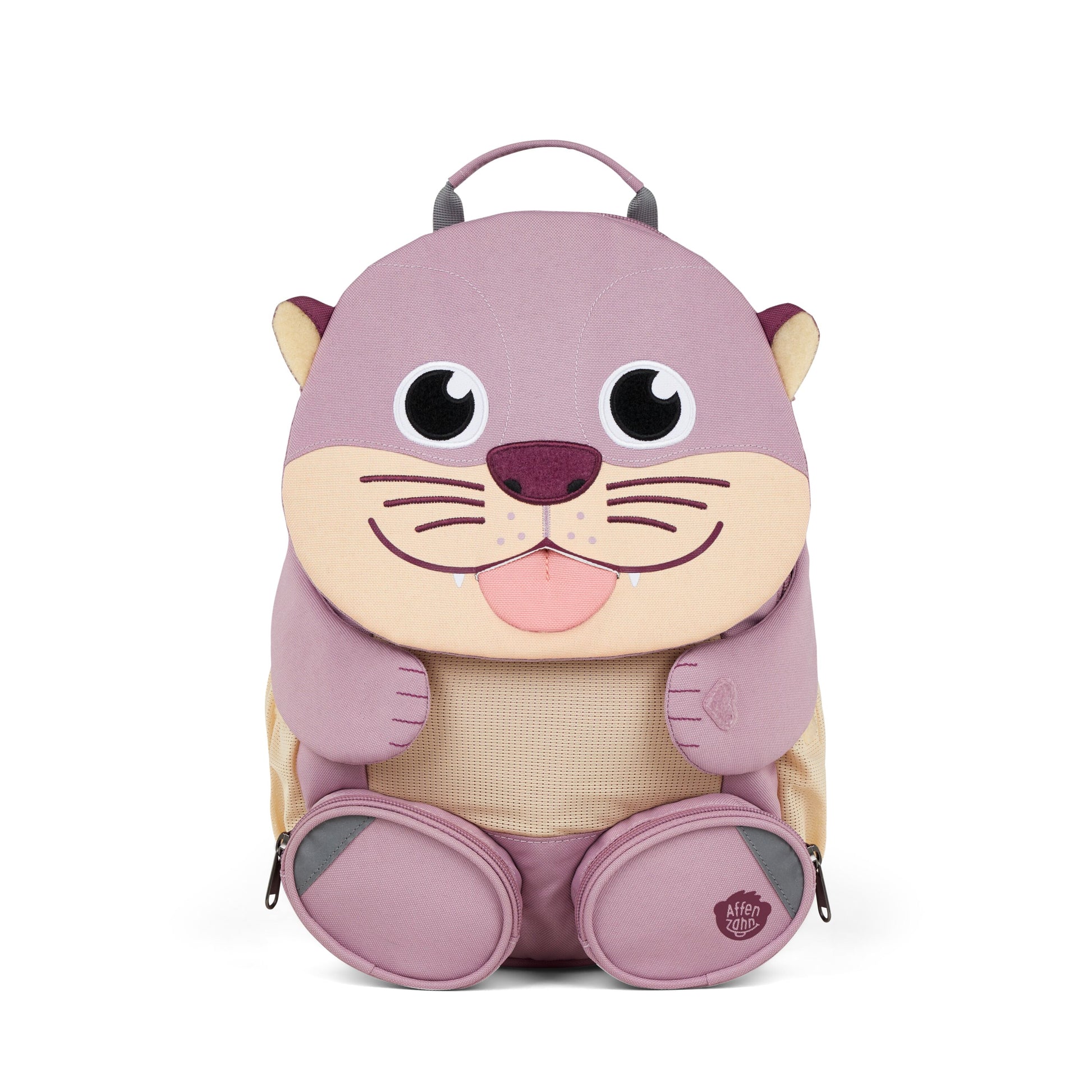 Le tasche laterali in rete, la tasca frontale e le taschine segrete lo rendono super pratico, mentre la linguetta estraibile con nome e le zampette in velcro aggiungono quel tocco di allegria che fa innamorare subito.