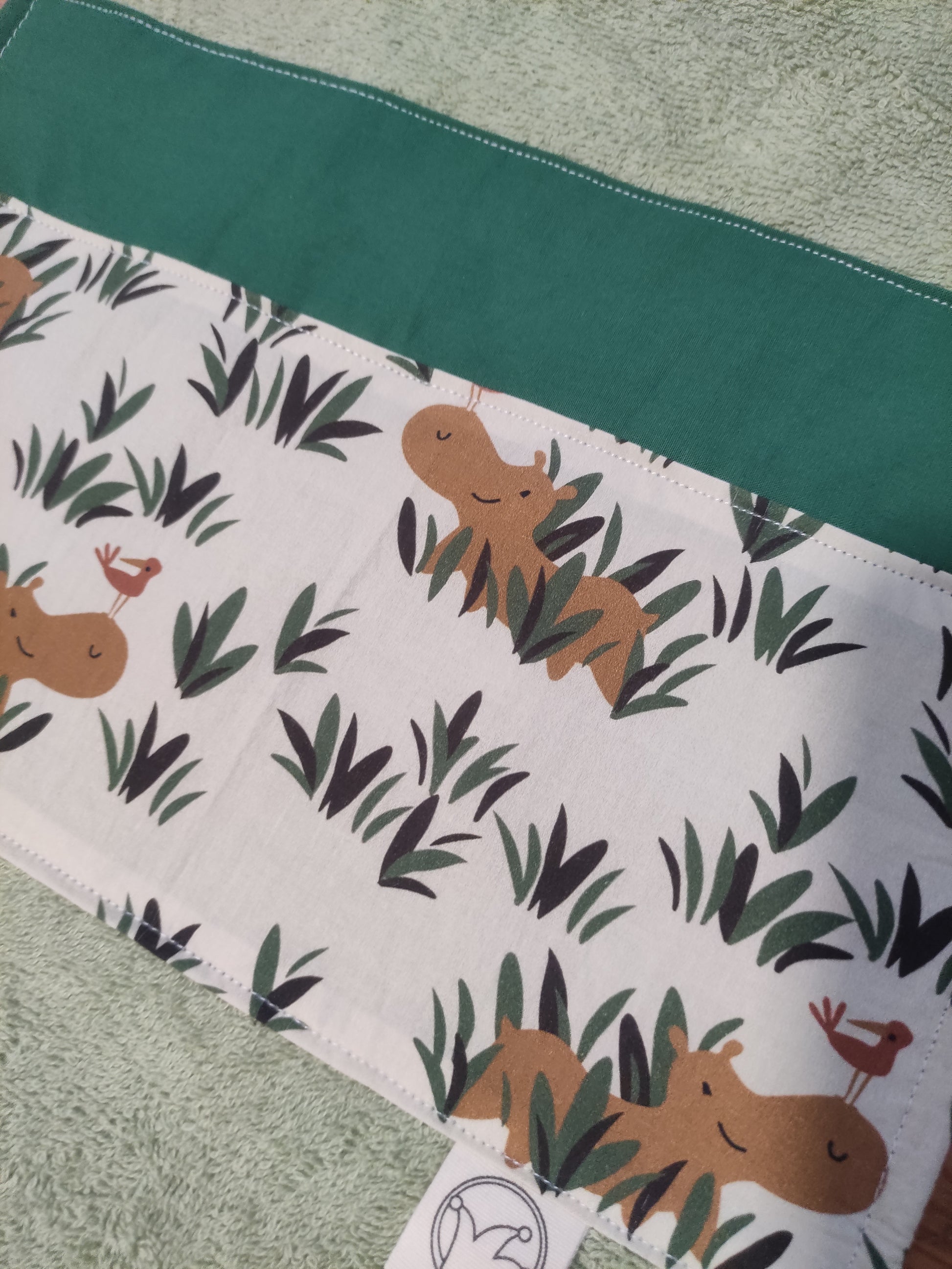 Assorbente, resistente e cucito a mano con cura, presenta un pratico gancio per appenderlo e una fascia in tessuto decorativo che lo rende unico e speciale.