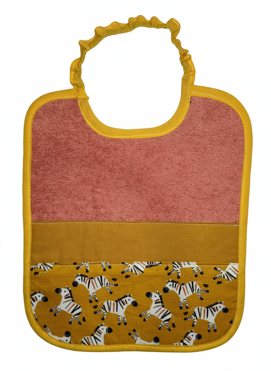 Bavaglino in morbida spugna 100% cotone, pratico e super assorbente, ideale per l’asilo e per i pasti di tutti i giorni.