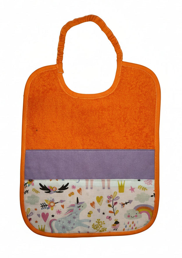 Bavaglino in morbida spugna 100% cotone, pratico e super assorbente, ideale per l’asilo e per i pasti di tutti i giorni.