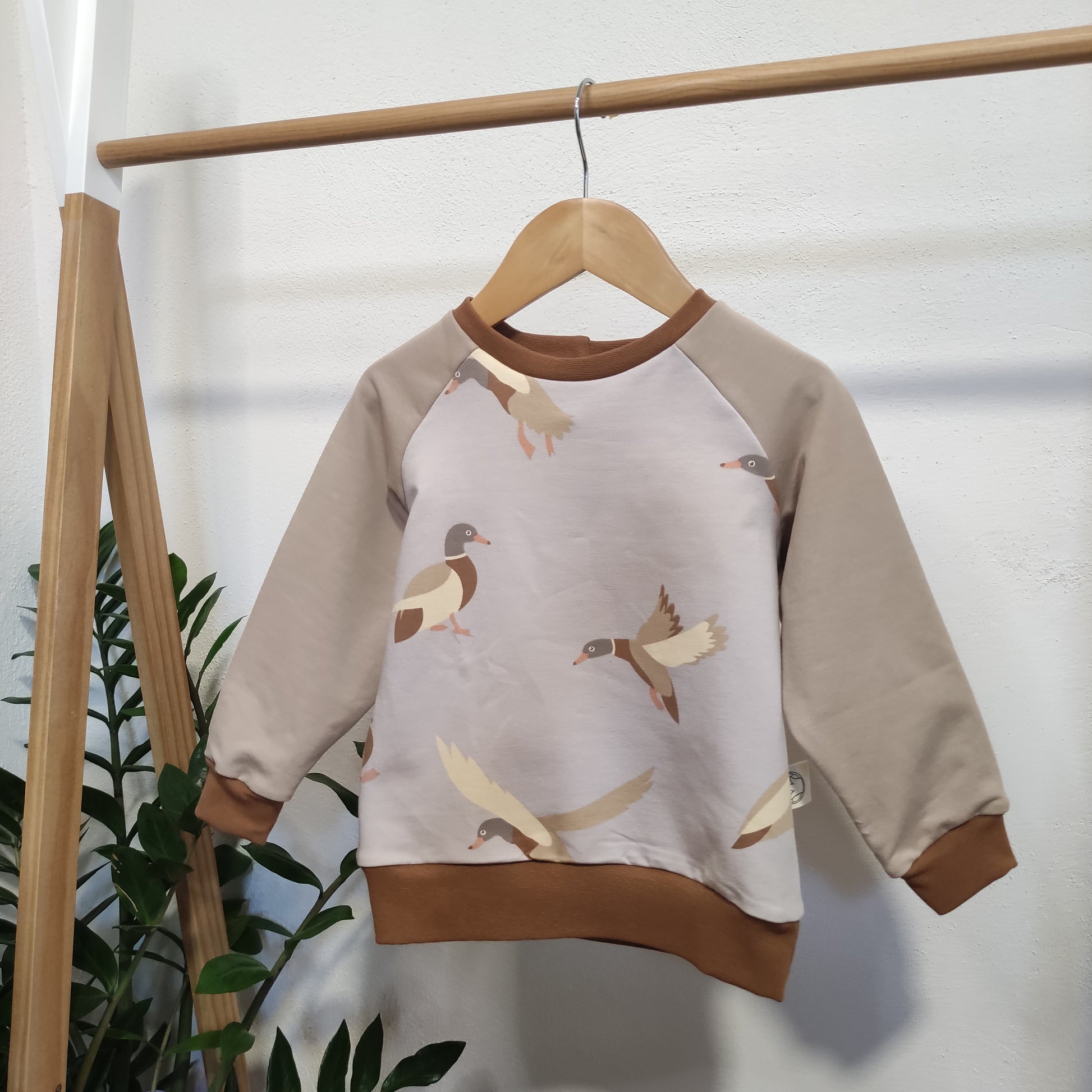 Il modello con maniche raglan offre una vestibilità comoda e libera nei movimenti: perfetta per correre, saltare e ridere senza sosta. La fantasia con le anatre farà innamorare grandi e piccini… impossibile non sorridere!