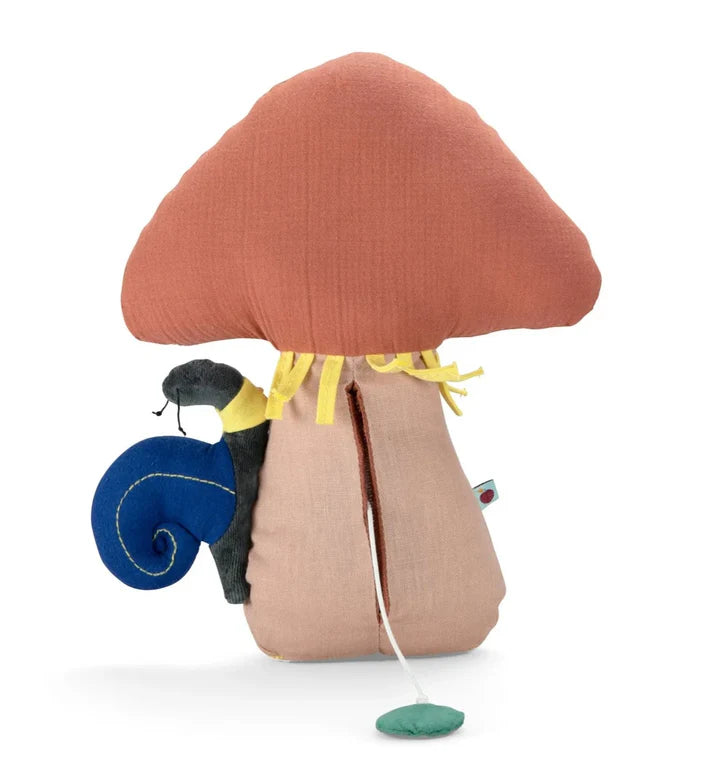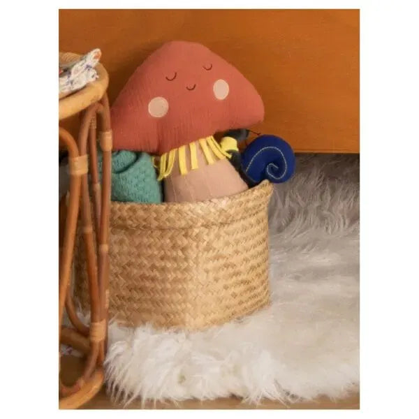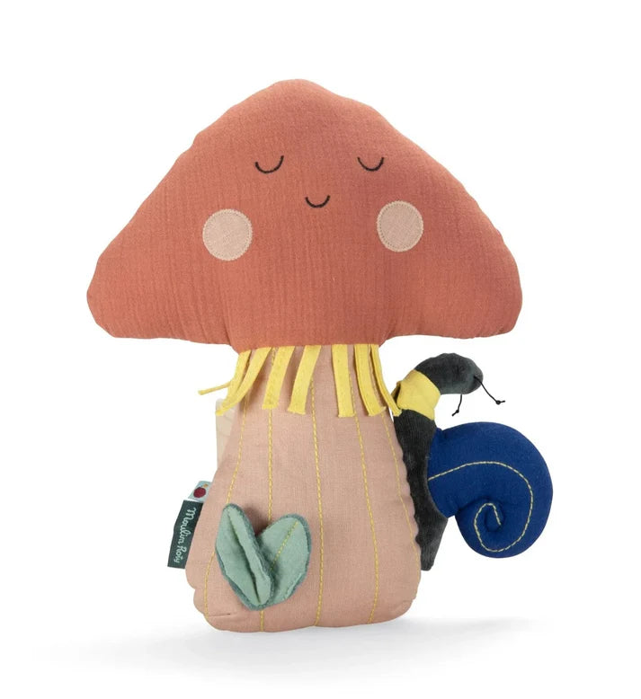 Peluche, doudou, giochi attività e accessori sono realizzati con tessuti soffici e tonalità tenere, ispirate alle foglie, ai frutti del bosco e agli animali che lo abitano.