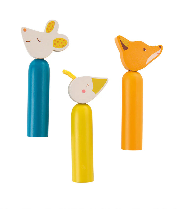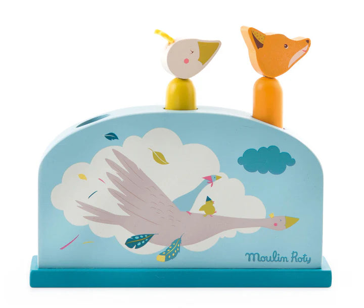 Gioco in legno Pop-Up. Premendo sui personaggi salteranno via!