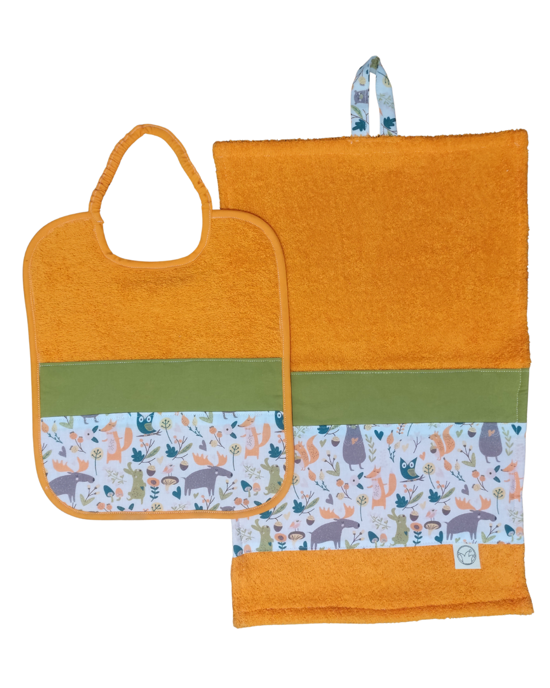 Un set funzionale, colorato e super resistente ai lavaggi: perfetto per l’asilo e per semplificare la routine quotidiana! 🌈🧡