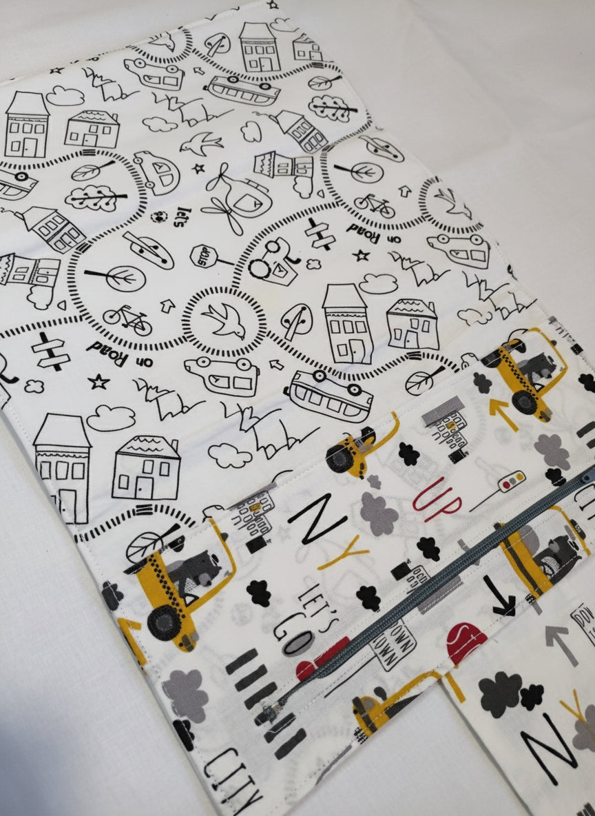La parte frontale è realizzata in cotone stampato da colorare , così i bimbi possono sbizzarrirsi e poi… ricominciare da capo! Basta usare i pennarelli lavabili per bambini , mettere tutto in lavatrice e la tovaglietta torna come nuova, pronta per mille nuove avventure colorate.
