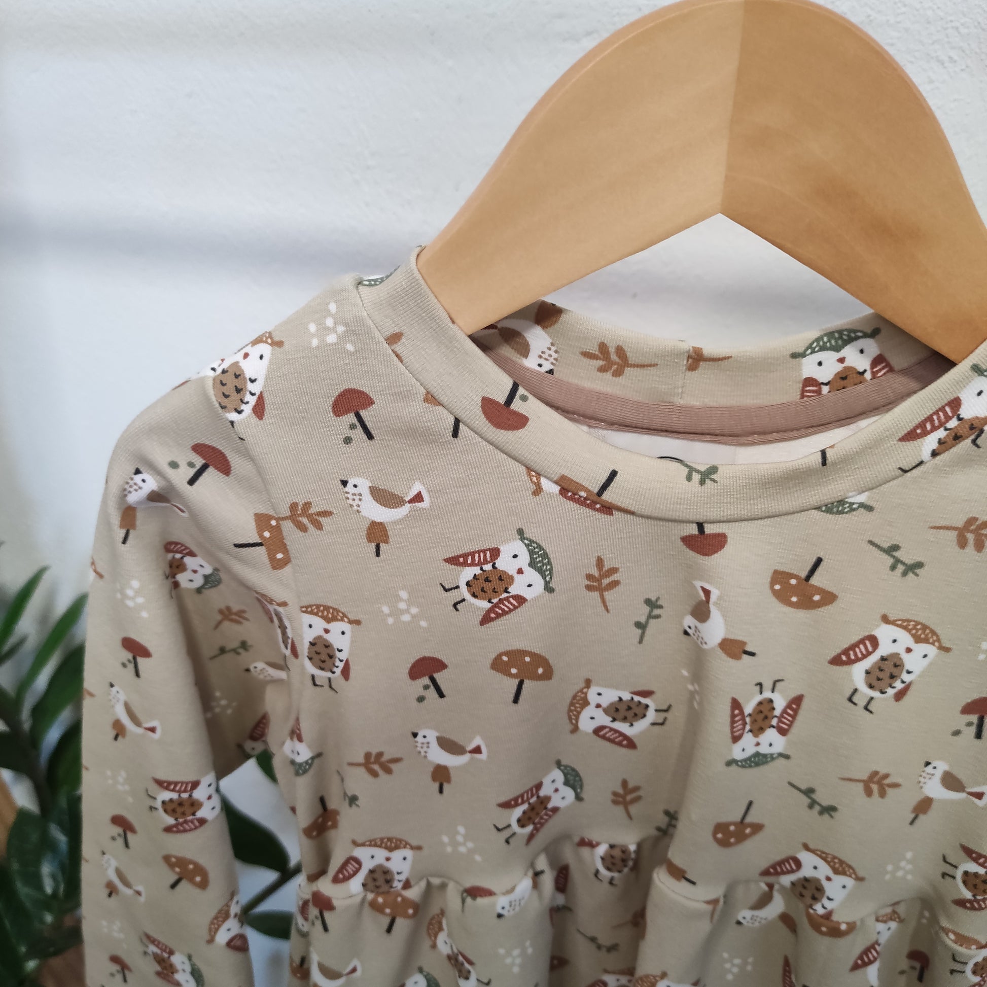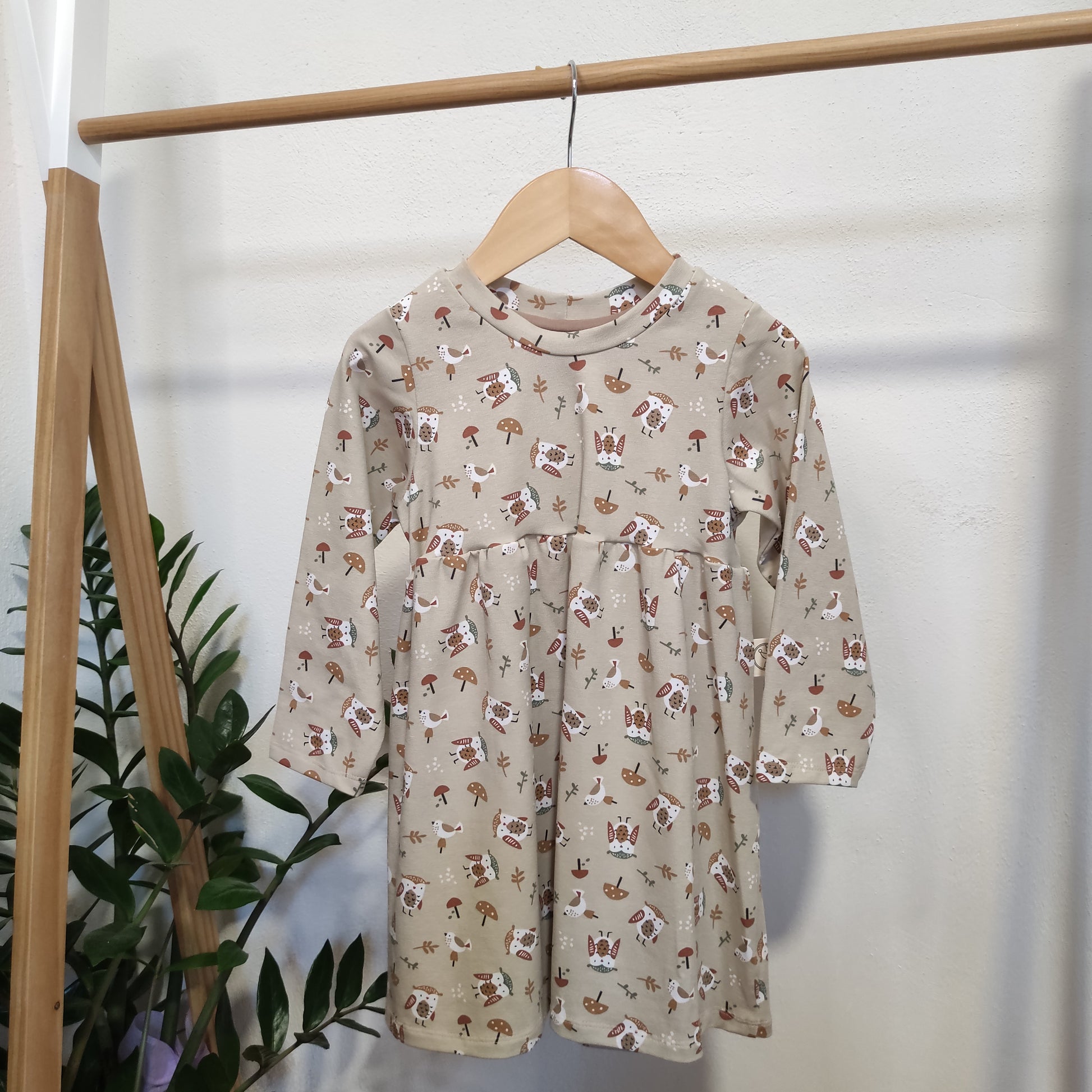La linea semplice e fluida lo rende ideale per l’asilo, le passeggiate e le giornate di gioco, mentre le maniche lunghe lo rendono adatto anche alle stagioni più fresche.